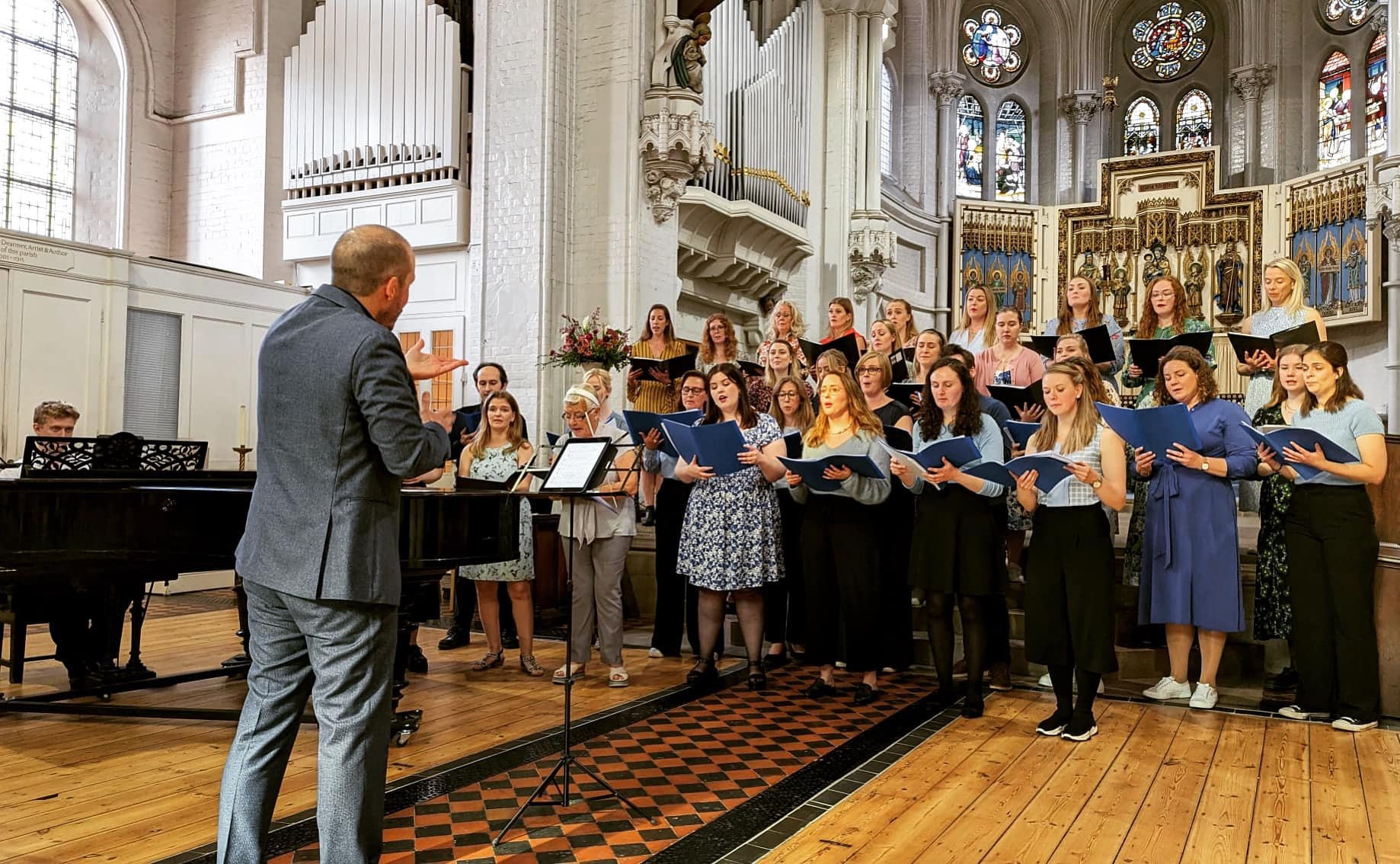 Helgi R. Ingvarsson conducting the Icelandic Choir of London and Dóttir Copenhagen Women’s Choir in May 2023. Pianist was Pétur Ernir. Venue: St Mary’s, Primrose Hill, London.