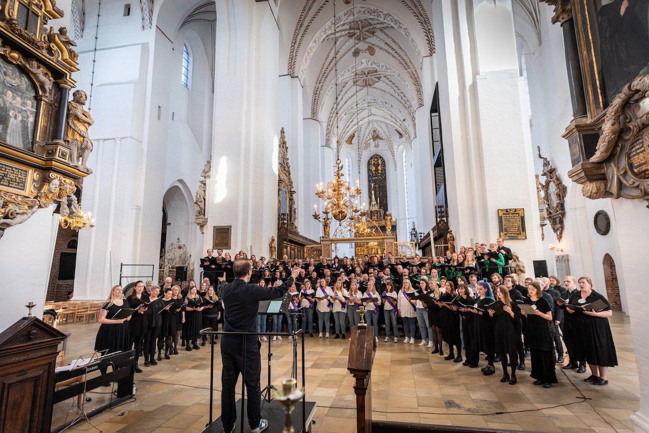 Helgi R. Ingvarsson conducting the Icelandic Choir of Europe in April 2022, Aarhus Cathedral, Denmark.