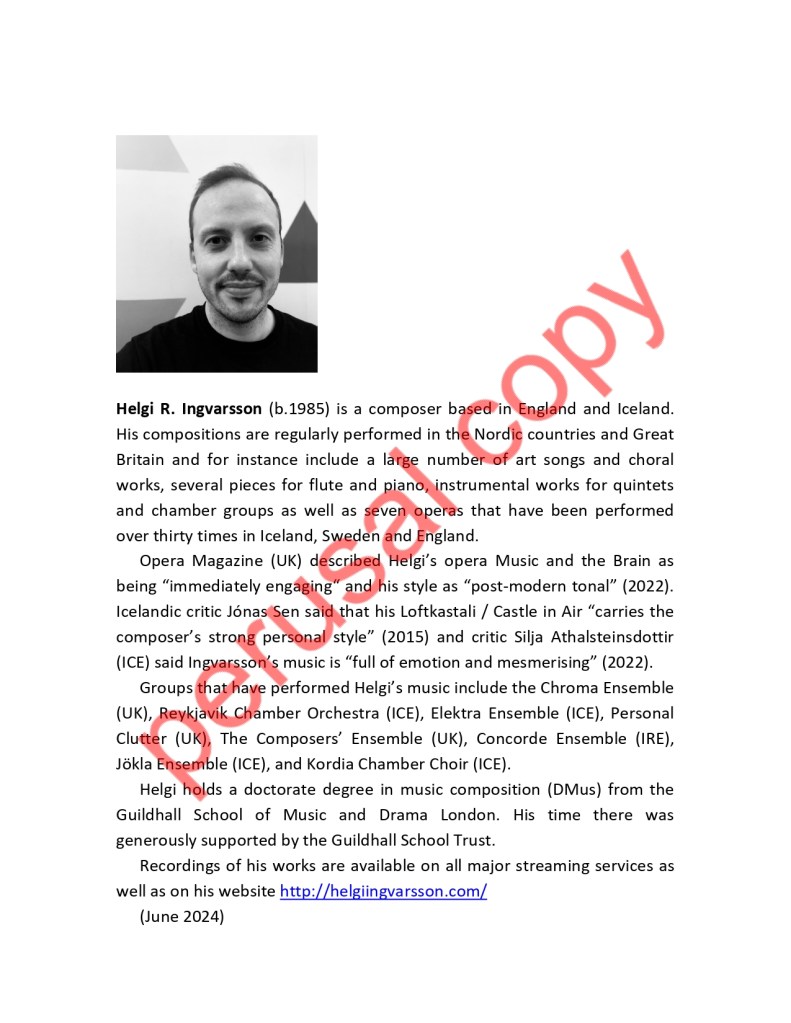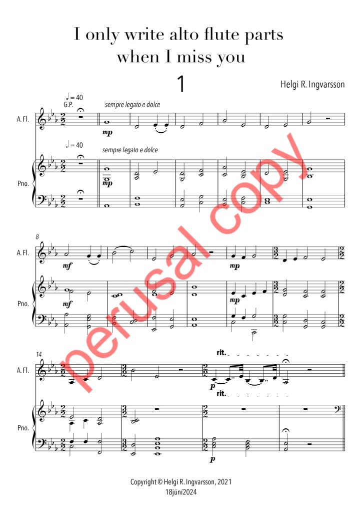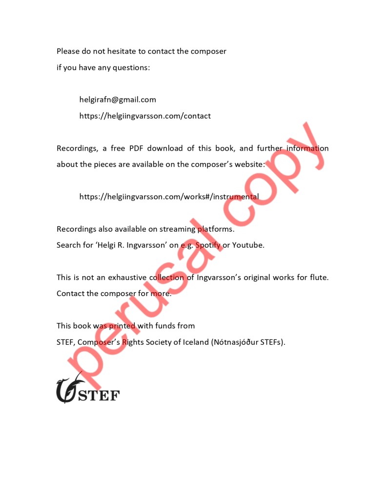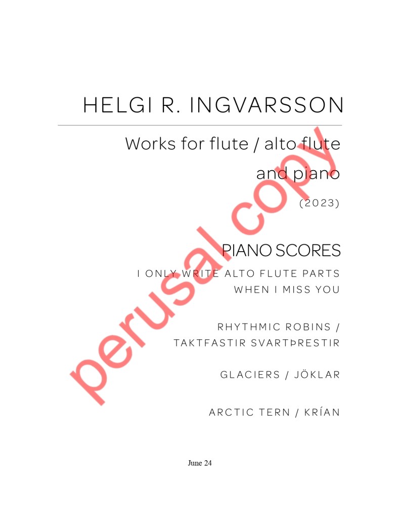Helgi R. Ingvarsson’s flute book, released in 2024, consists of four original works for flute and piano, and alto flute and piano. The oldest work was written in 2018, and the newest one in 2021. Below you can listen to recordings and see a sample of the book.
