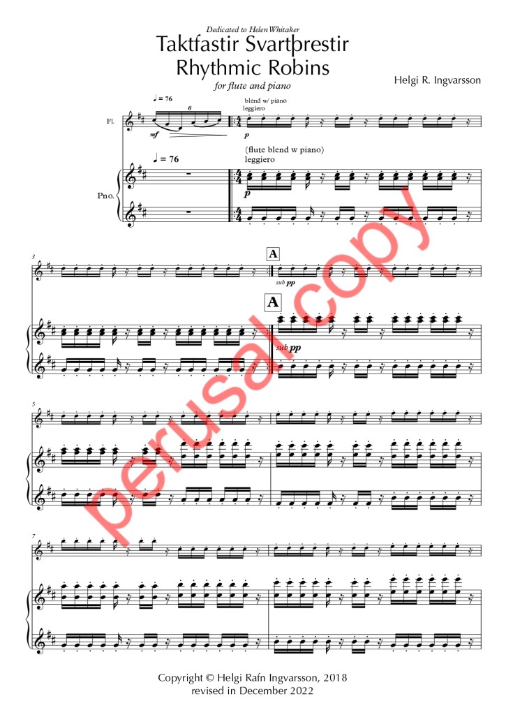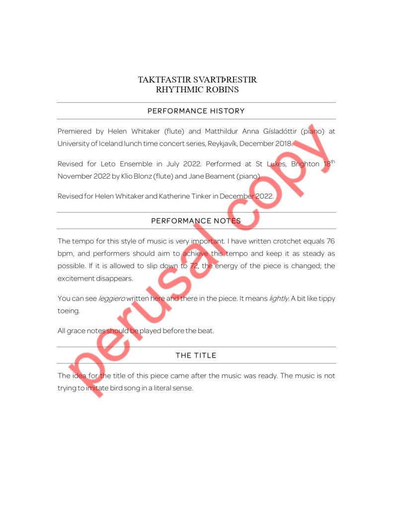 Rhythmic Robins / Taktfastir Svartþrestir – for flute and piano (performed by Helen Whitaker and Katherine Tinker in 2023)