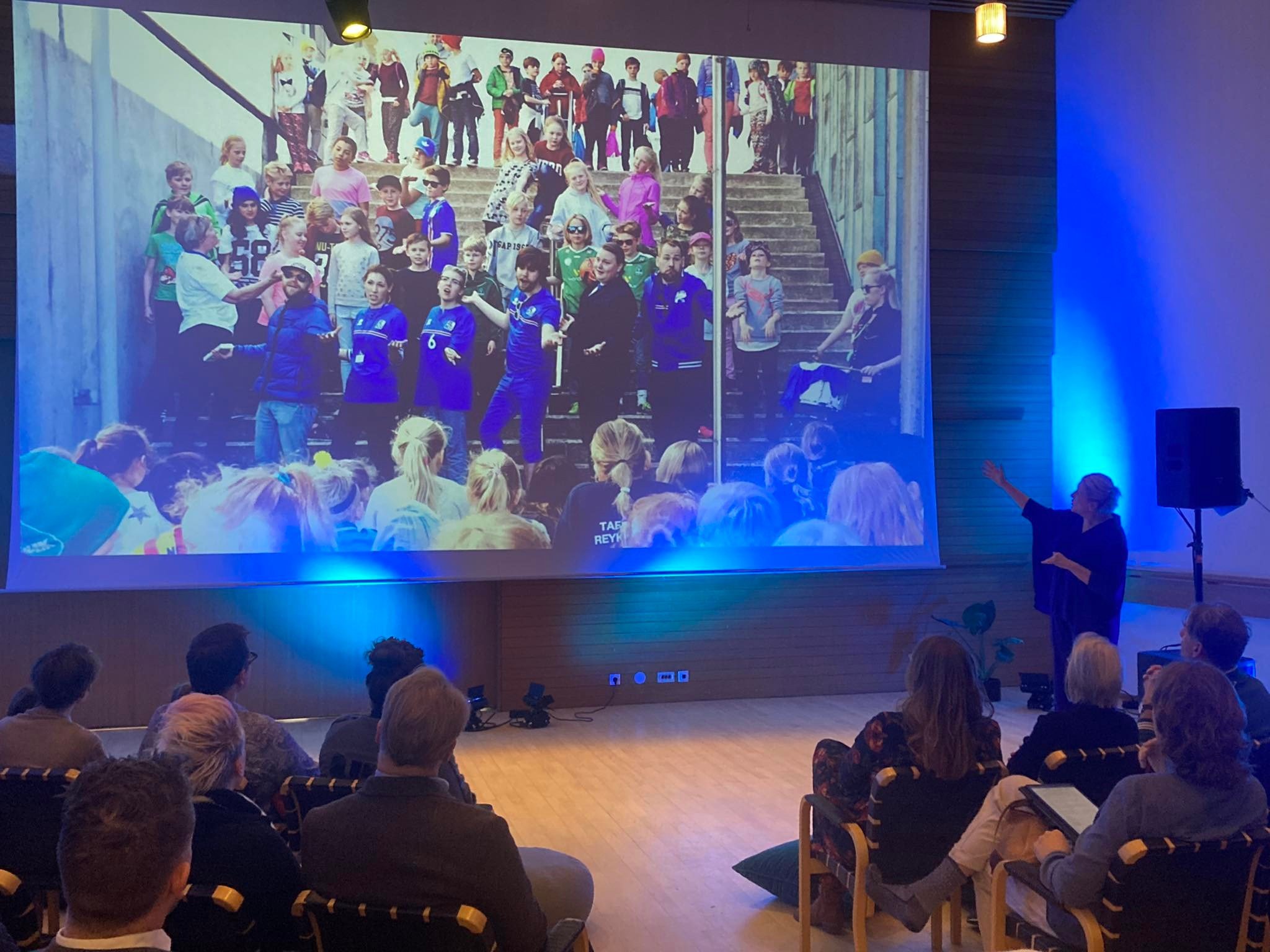 Ingvarsson’s Football opera being introduced to Reykjavík Opera Days’ audiences during their opening festival in October 2022. Speaker: Guja Sandholt artistic director.